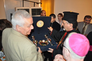 في نهاية اللقاء أهدى رئيس الديوان الى غبطة البطريرك هدية تذكارية