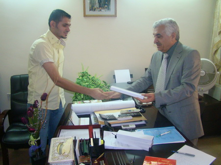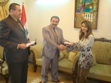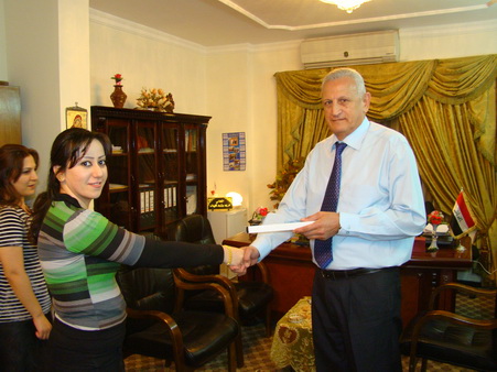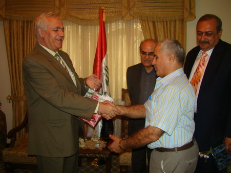 من منتسبي قسم العلاقات والإعلام الذين قدموا له هدية