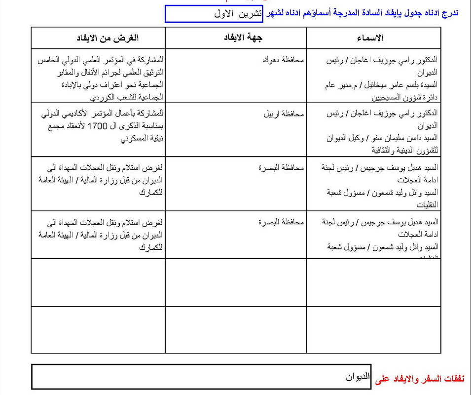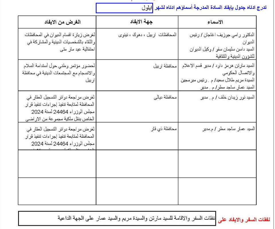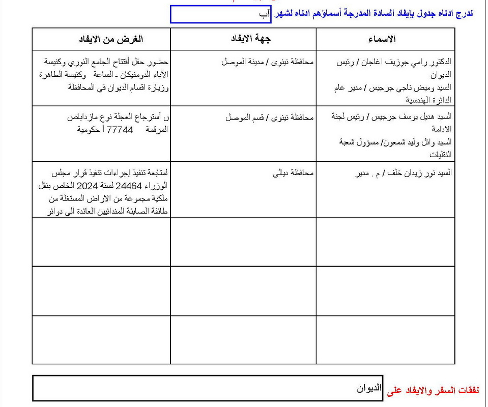 الايفادات الرسمية لموظفي الديوان لسنة 2025