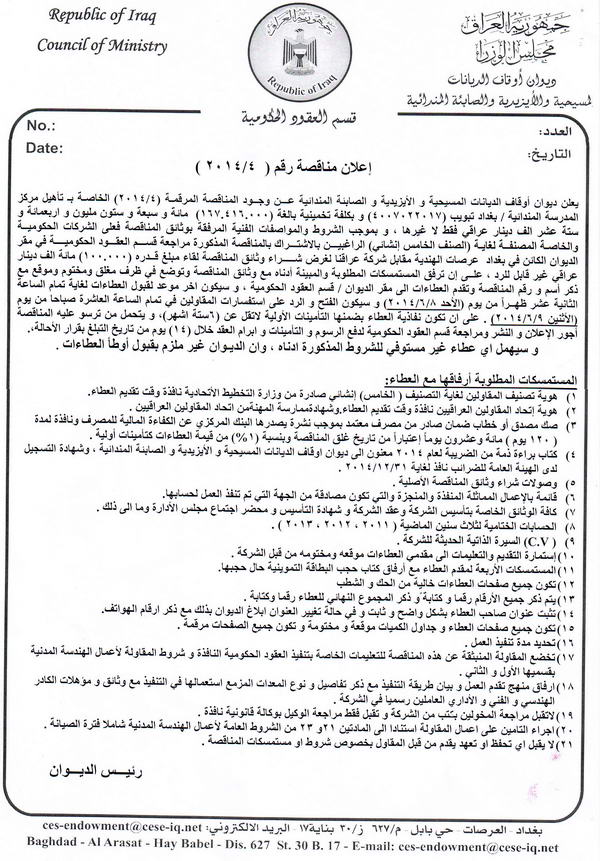 (إعـــلان مناقصة رقم (4/2014))
