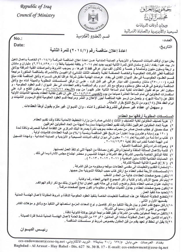 (إعادة اعـــلان مناقصة رقم (1/2014))