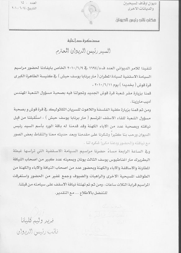 المسيحيين والديانات الاخرى وفد الديوان الى قرة قوش