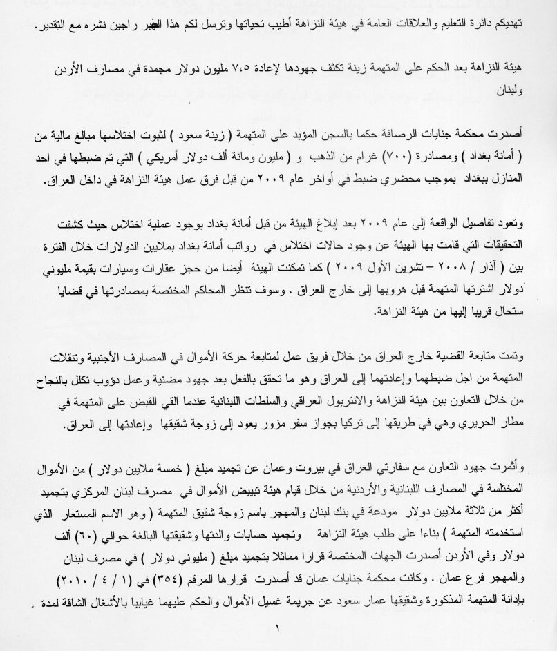 هذا الخبر التالي أدناه من دائرة التعليم والعلاقات في هيئة النزاهة لغرض النشر في المواقع الرسمية....