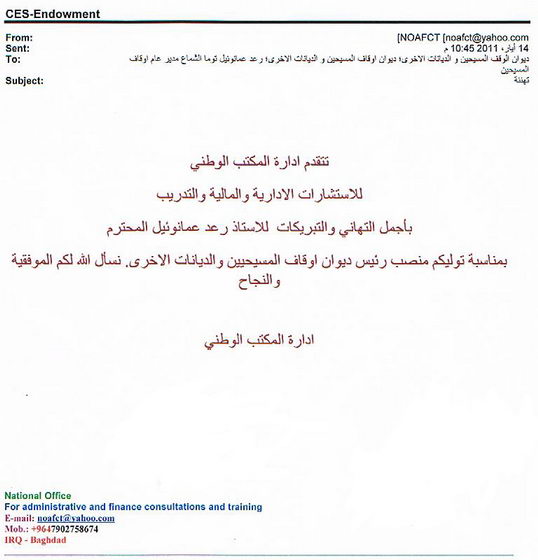 وصلت الى الديوان تهاني وتبريكات من جهات عدة الى الاستاذ رعد عمانوئيل الشماع لتسنمه مهام عمله في منصبه الجديد رئيساً لديوان أوقاف المسيحيين والديانات الآخرى، وفما يلي أدناه بعض من هذه التهاني.....