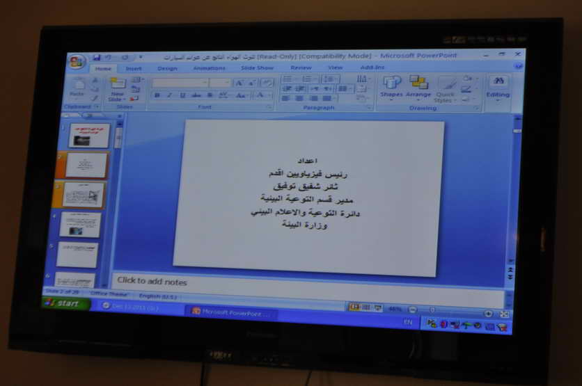 البيئة اليوم الاربعاء الموافق 14/12/2011 وعلى قاعة