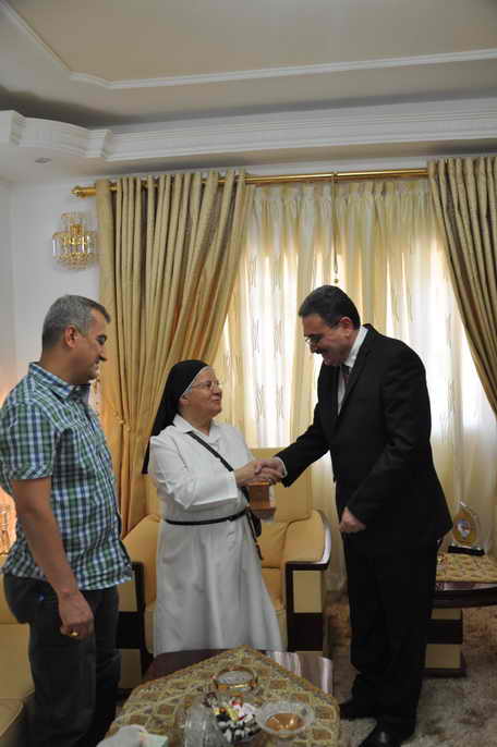 استقبل رئيس ديوان أوقاف المسيحيين والديانات الأخرى وكالة السيد رعد جليل كجة جي الاخت تيريز كوريل نونا (أخوات التقدمة للراهبات) ، اليوم الثلاثاء المصادف 10-7-2012 ورافقها في اللقاء السيد غالب منصور مدير مستشفى الراهبات.