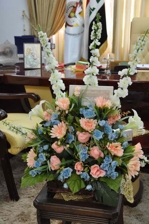 المجيد مع باقة ورد نيابة عن رئيس ديوان الوقف السني الشيخ