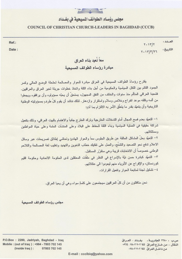 بالمبادرة: (يقترح رؤساء الطوائف المسيحية في العراق مبادرة
