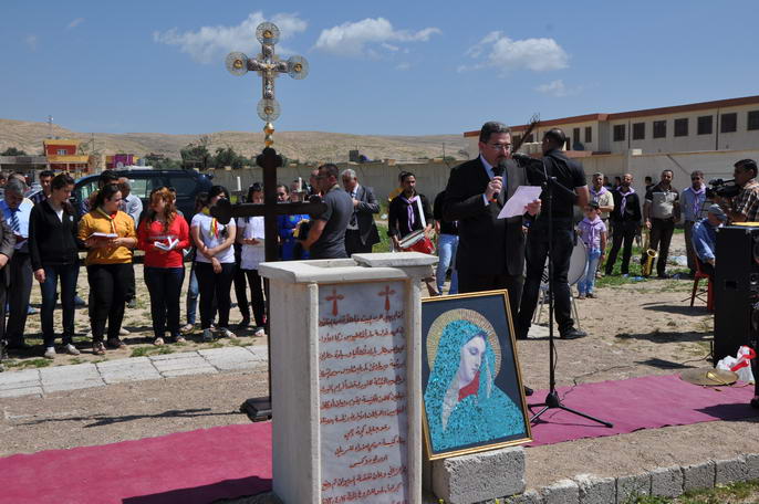 اليوم بوضع حجر الاساس لكنيسة مريم العذراء في بحزاني وهي احدى