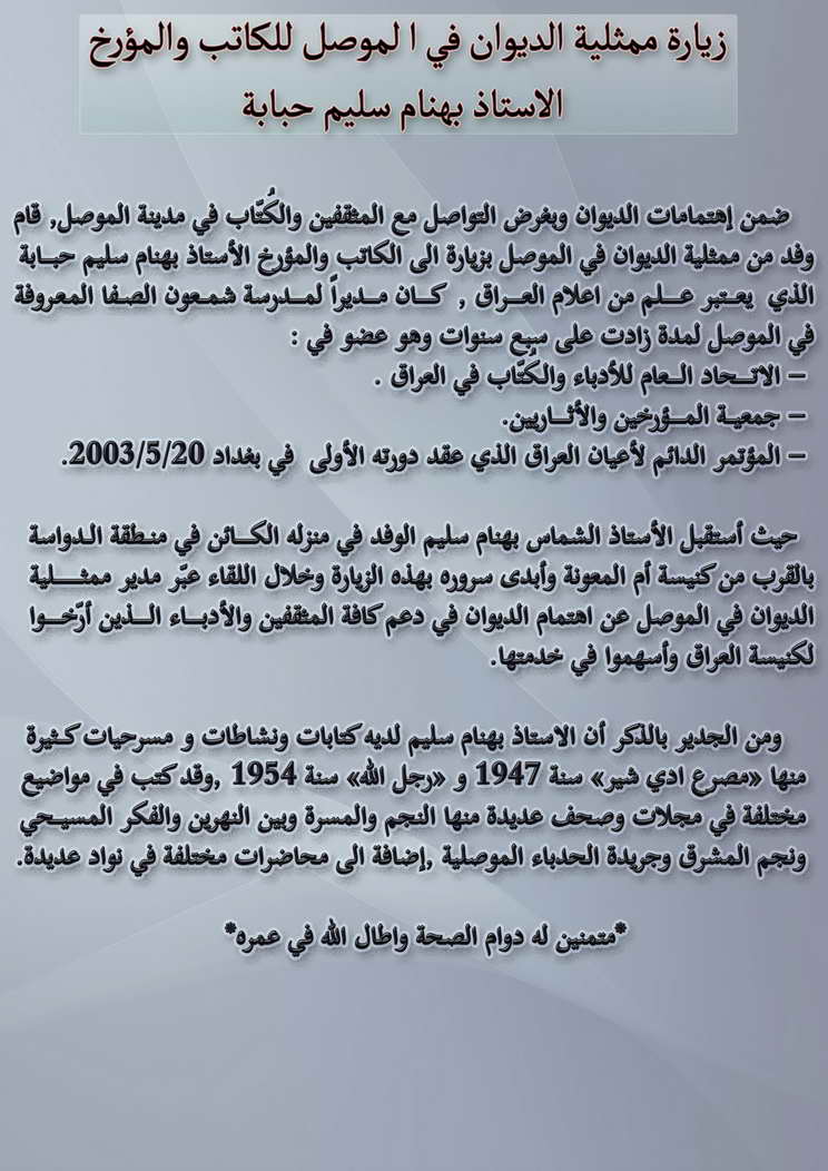 زيارة للكاتب والمؤرخ بهنام سليم حبابة