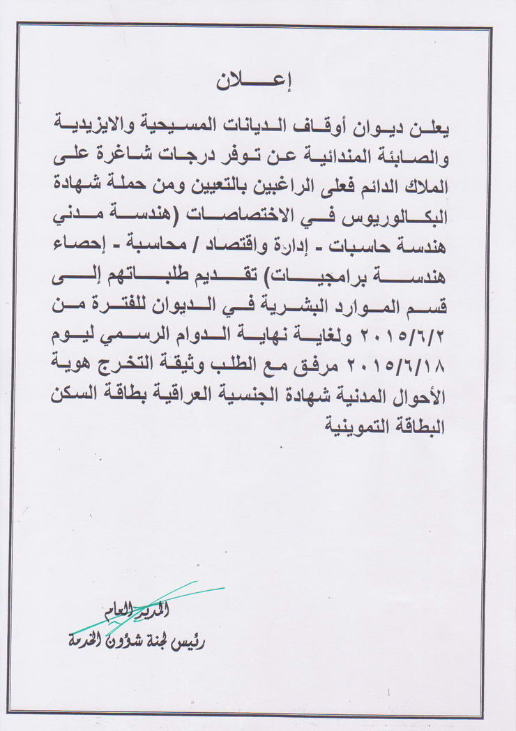 اعلان/ درجات وظيفية شاغرة