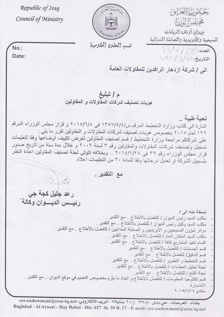 الى شركة ازدهار الرافدين للمقاولات العامة