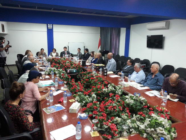 اقامت جمعية خريجي جايكا – العراق صباح الخميس المصادف 1-10-2015 حلقة نقاشية بعنوان " دور المرأة العراقية في التنمية البشرية "Role of Iraqi Woman in Human Development" في المركز الثقافي النفطي في بغداد بحضور ممثل منظمة جايكا اليابانية في العراق السيد شوهي هارا كما حضرها من الديوان مدير عام دائرة شؤون الصابئة المندائيين/وكالة المهندسة نادية فاضل مغامس ومدير القسم التجاري المهندسة مشاعل متي عزيز ومدير مكتب رئيس الديوان السيد هاني قسطو.