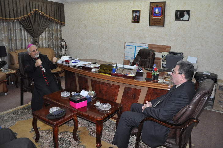 زار وفد مكون من رئيس الديوان السيد رعد كجةجي ومدير عام دائرة شؤون المسيحيين السيد نبيل الخوري ومعاون مدير عام الدائرة الهندسية ر.مهندسين .ا وميض ناجي جرجيس صباح الاربعاء 16 كانون الاول 2015 مطرانية السريان الكاثوليك حيث استقبلهم صاحب السيادة المطران مار افرام يوسف عبا رئيس أساقفة بغداد والنائب البطريركي على البصرة والخليج العربي للسريان الكاثوليك الجزيل الاحترام، وتحدث الطرفان خلال اللقاء عن الخدمات التي يقدمها الديوان الى الطائفة.