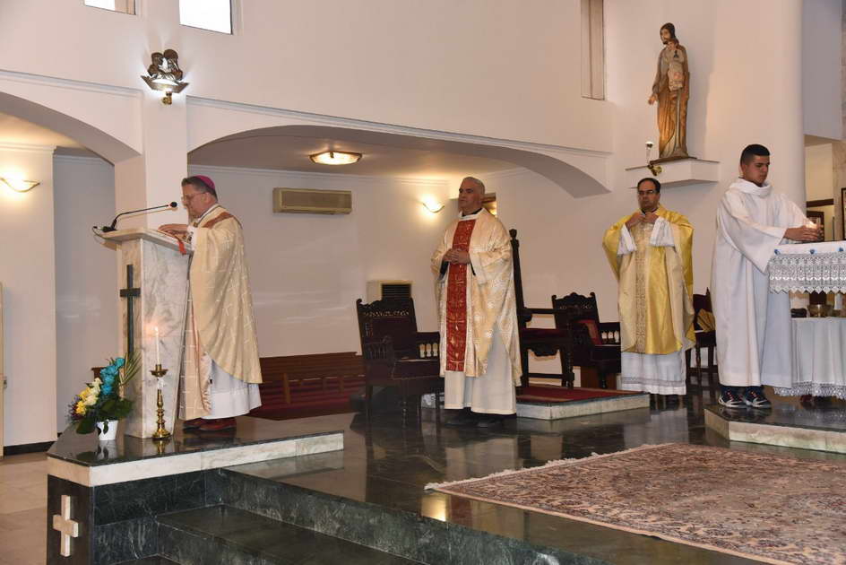 احتفل بالقداس الأحتفالي سيادة المطران جان سليمان(رئيس طائفة اللأتين)وبمشاركة المطران مار افرام يوسف عبّا (رئيس طائفة السريان الكاثوليك) بمشاركة سعادة السفير البابوي الجديد ومجموعة من الأباء والقسس لعدة طوائف.