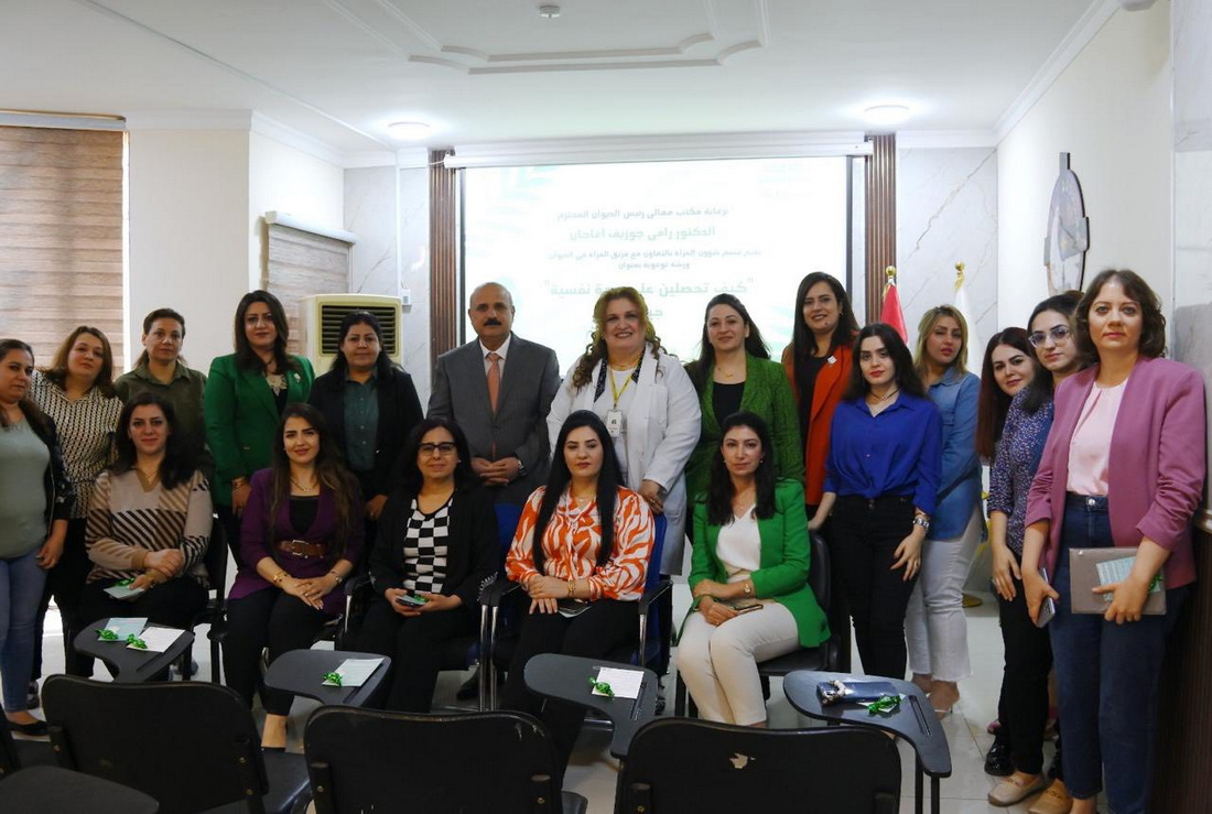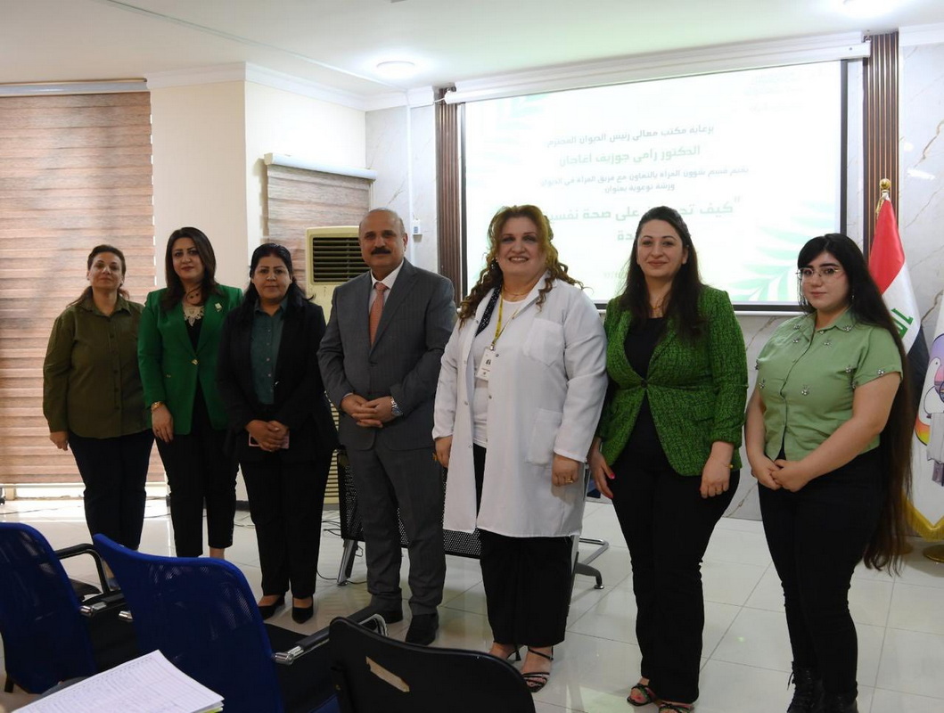 بتوجيه من مكتب معالي رئيس الديوان، وتنفيذاً لبنود الاستراتيجية الوطنية للمرأة العراقية - محور التمكين الاجتماعي، نظم قسم شؤون المرأة بالتعاون مع فريق المرأة في الديوان ندوة توعوية بعنوان "كيف تحصلين على صحة نفسية جيدة" حضرها الوكيل الديني والثقافي السيد داسن سليمان سفو.
