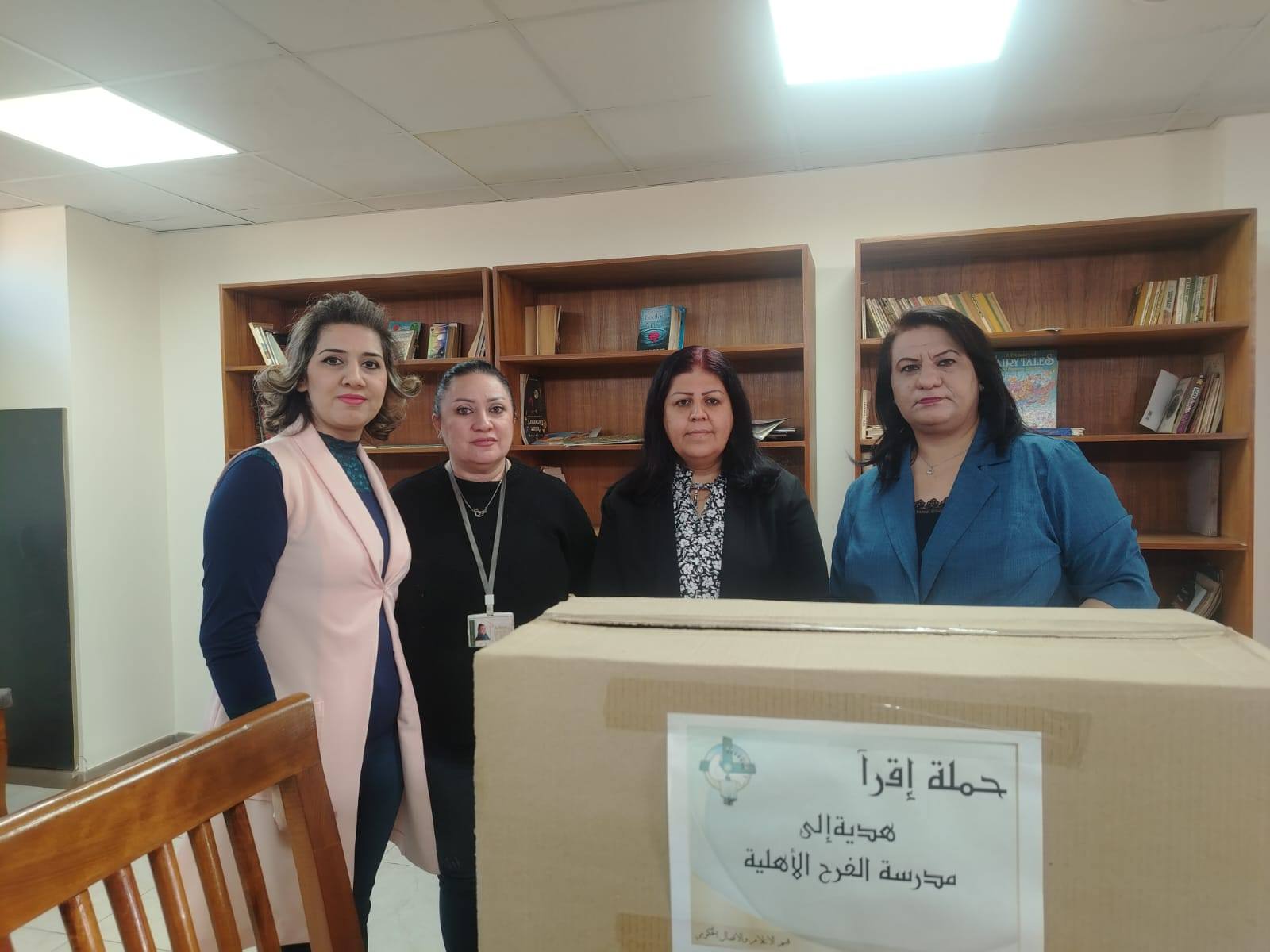 برعاية معالي رئيس الديوان الدكتور رامي جوزيف آغاجان، وتنفيذاً لتوجيهات مديرة مكتبه المهندسة بلسم عامر ميخائيل، قامت لجنة جرد الكتب التابعة للديوان التي ضمت السيدة رشا سالم داود والسيدة فادية عصمت داود والانسة عبير فاروق نعوم، اليوم الأربعاء ١٩ تشرين الثاني ٢٠٢٥، بحملة ميدانية لتوزيع كميات من الكتب والمراجع العلمية والأدبية على عدد من المدارس، ضمن حملة "إقرأ" الرامية إلى دعم الحركة العلمية والثقافية لطلبة المدارس.