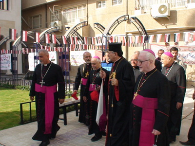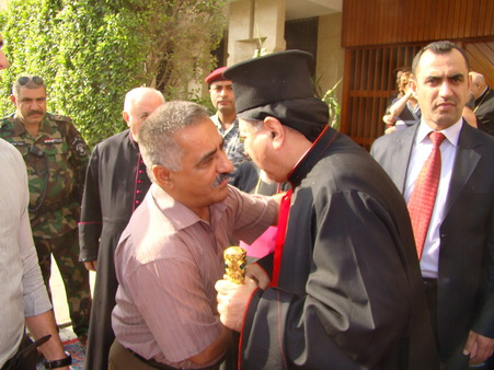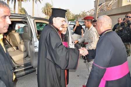 مستقبيله الى مقر مطرانية السريان الكاثوليك في بغداد، حيث