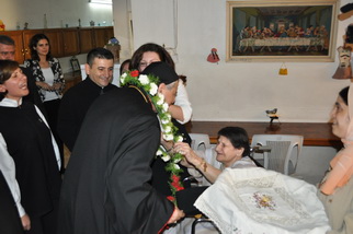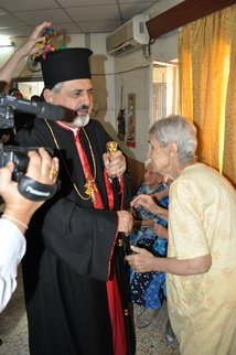 بالزغاريد والورود... وتحدث غبطته مع بعض نزلاء الدار