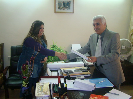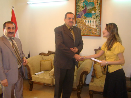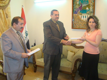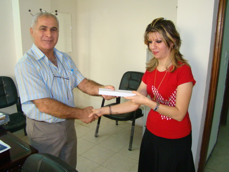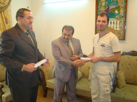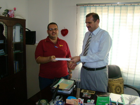 من منتسبي قسم العلاقات والإعلام الذين قدموا له هدية