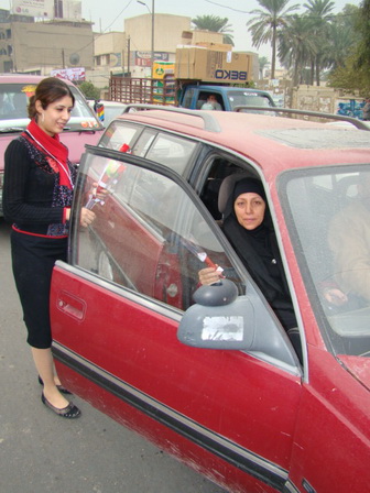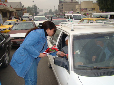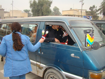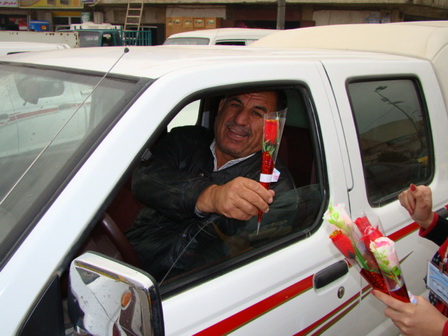 ورد في الساحات والشوارع العامة على مختلف اطياف الشعب